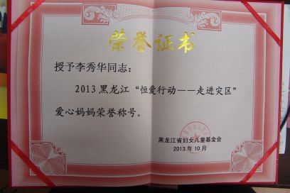 李秀华是哈尔滨工程大学一名普通的退休工人。近日,她在省妇联、省妇女儿童基金会开展的“2013黑龙江‘恒爱行动’――走进灾区”公益活动中,荣获“爱心妈妈”荣誉称号。李秀华在这次活动中,用三斤毛线亲手编织了两件毛衣送给灾区的孩子们,为我省受灾地区的贫困孩子送去了温暖。李秀华同志退休后,在学校社区做宣传员,也是我校老年大学服饰队的成员,她是一位乐观开朗、乐于助人的人。平时,无论在社区还是在服饰队,她都尽自己所能帮助别人。她觉得能为社会奉献爱心,让需要关怀的灾区儿童得到关爱,自己的生活才更有意义,她说,以后自己还要继续关注灾区儿童、关注弱势群体,尽自己的力量帮助更多需要帮助的人。