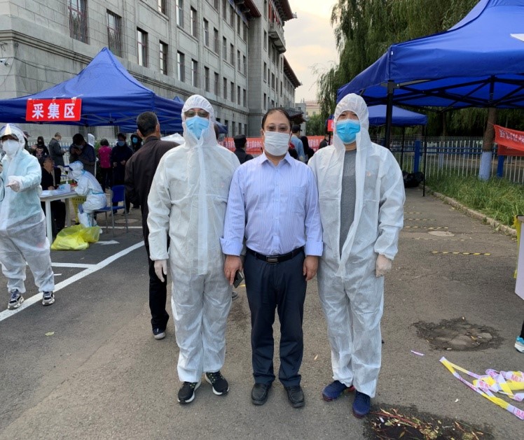 个社区核酸采集点协助工作。学校机关党委李凯书记来到现场,并对离退休处党支部这次“我为群众办实事”活动给与充分的肯定。