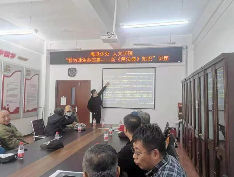 10月25日上午9时,离退休处、人文学院“我为师生办实事——新《民法典》知识”讲座于启航活动中心二楼253会议室如期举行。本次活动由哈尔滨工程大学离退休处组织,人文学院法学系讲师关健担任主讲人,哈尔滨工程大学部分离退休老同志参加。