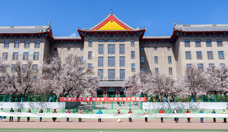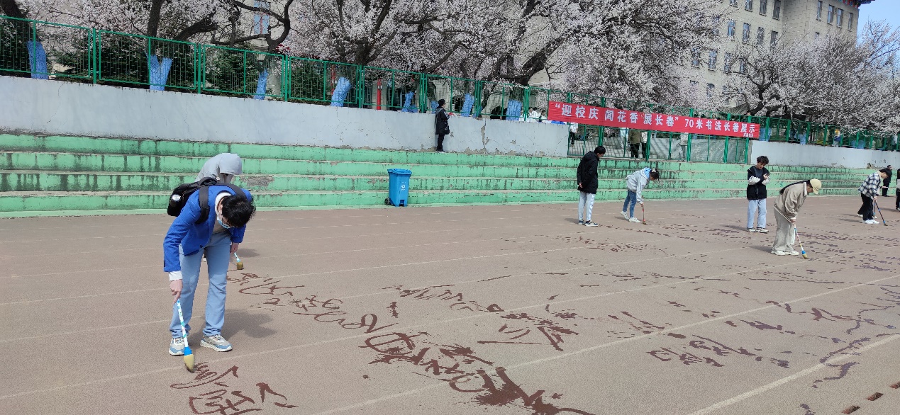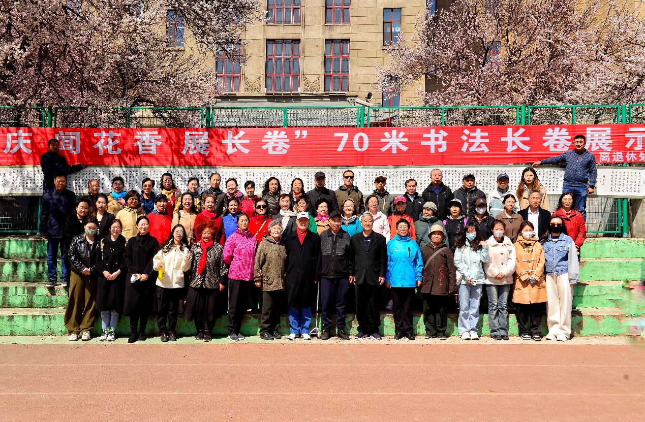 4月21日,离退休处在学校南体育场组织开展“迎校庆 闻花香 展长卷”70米书法长卷展示活动。
