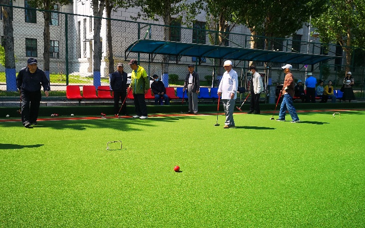 5月26日上午,离退休处“快乐运动 健康生活”嘉年华活动系列活动之门球比赛,在校门球场举行。门球运动一直深受广大离退休教职工的喜爱,参赛选手平均年龄82岁,选手们非常认真对待此次比赛,坚持每天按时训练。比赛现场紧张激烈,大家切磋球技,交流感情,愉悦身心。