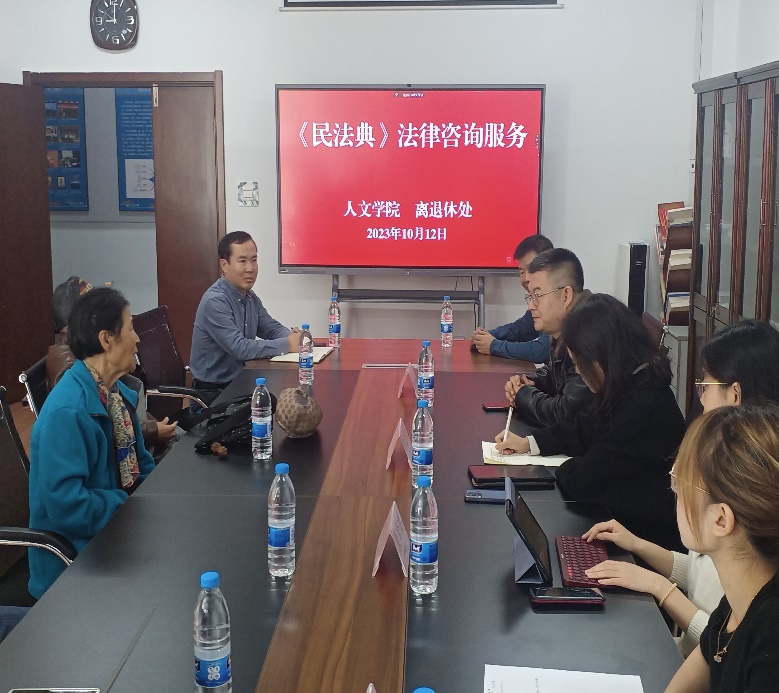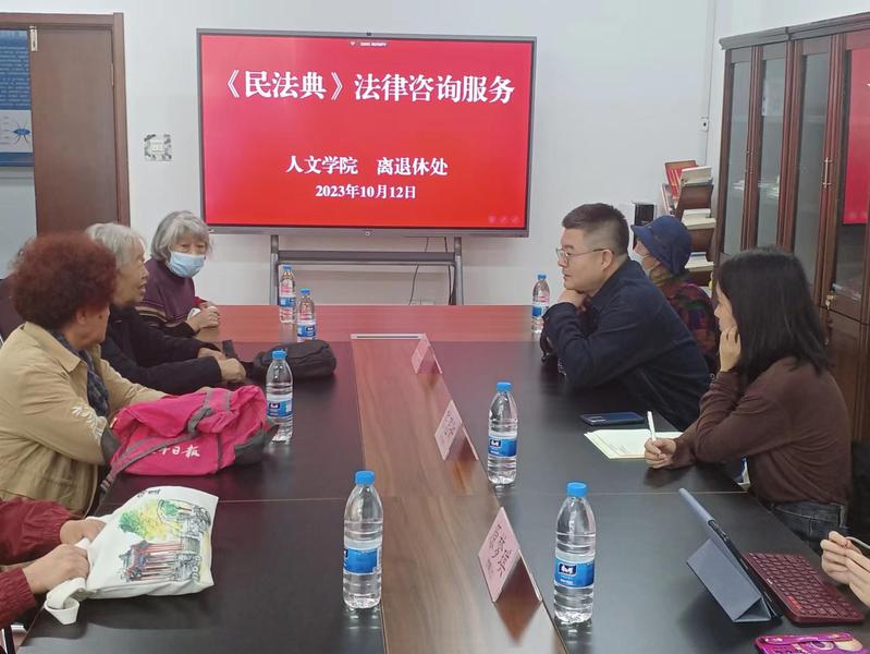 为深入学习贯彻党的“二十大”精神和习近平总书记视察学校时重要讲话精神,把“为老同志办实事”落到实处,引导离退休老同志学法、懂法、用法,营造平安和谐的良好氛围,10月12日,离退休处和人文社会科学学院在启航活动中心“离退休教职工社会工作站”联合举办《民法典》法律咨询服务活动。