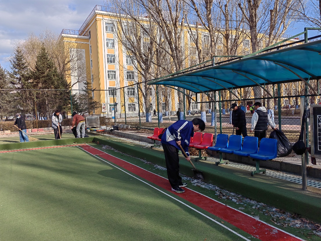 冰雪消融,大地回春,春意盎然的天气正是室外锻炼的好时节。为了让老同志们能在干净整洁的门球运动场上锻炼身体,愉悦身心,4月1日下午,离退休处联合学校至工书院,组织7名学生志愿者义务清理了学校门球场。同学们清理了场地上的残雪,清扫了堆积一冬的树叶,擦拭了场上供老同志休息的座椅,门球场地焕然一新。