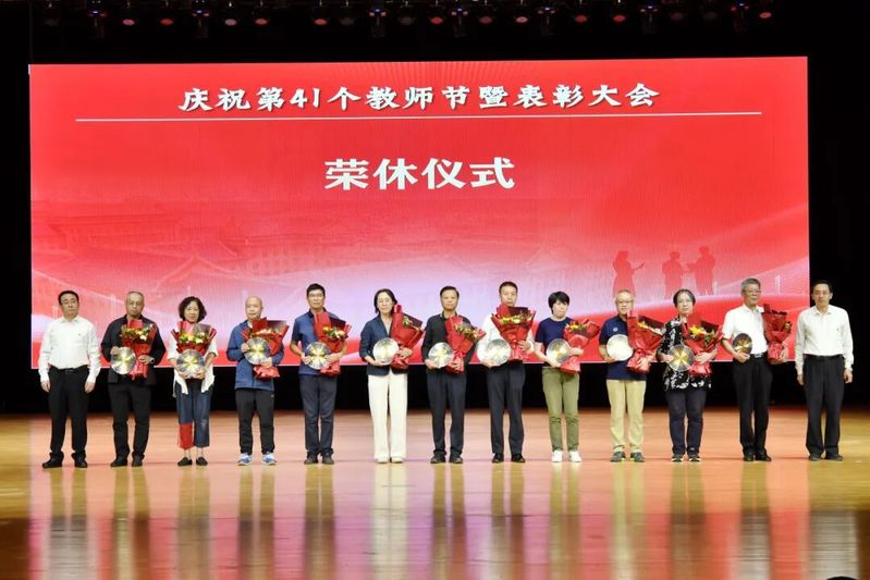 9月9日,学校在启航剧场举行教师节表彰大会,庆祝第41个教师节的到来,在大会上举行了荣休仪式和师德传承仪式。校党委书记高岩,校党委副书记、校长宋迎东等校领导出席会议。