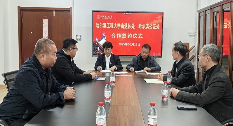 2025年10月15日,离退休处与哈尔滨市公证处正式举行合作签约仪式。处长于险波、离退休人员党委书记李平、副处长付洪波及哈尔滨市公证处副主任寇玉芳等双方代表出席仪式。