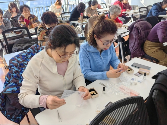 此次活动的材料由离退休处统一提供,大家现场完成的螺钿胸针均可带回留念。活动不仅让离退休女教工们度过了一个温馨雅致的节日,更在指尖创作中绽放巾帼芳华,让非遗文化在交流与实践中得到传承与弘扬。