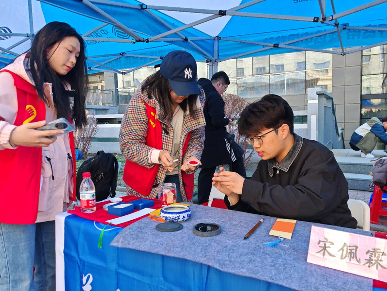 本次活动设置两个环节,共赠送出600余张书法家现场书写的精美书签,师生可现场参与,既可用主办方提供的空白书签,也可自带特色书签纸,参与方式灵活便捷,让传统文化可感可触、可亲可学。在现场挥毫赠书签环节,书法家们凝神运笔、挥毫泼墨,为师生书写创意书签并免费赠送,一句句励志箴言、一幅幅清雅字迹,承载着对青年学子的殷切期许与美好祝福,方寸书签尽显笔墨深情。在师生互动体验环节,现场备齐笔墨纸砚,书法家们悉心指导执笔姿势、运笔技巧,师生们踊跃参与、亲手书写,在横竖撇捺间感受汉字之美,沉浸式体验书法艺术的独特魅力。